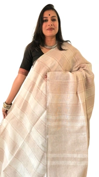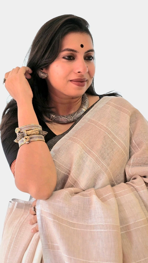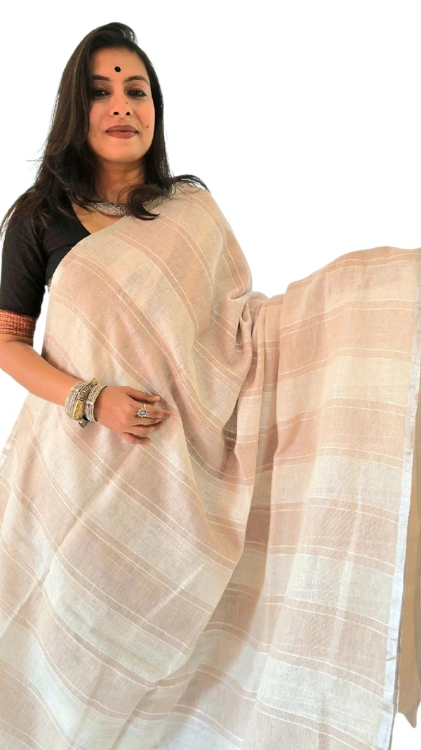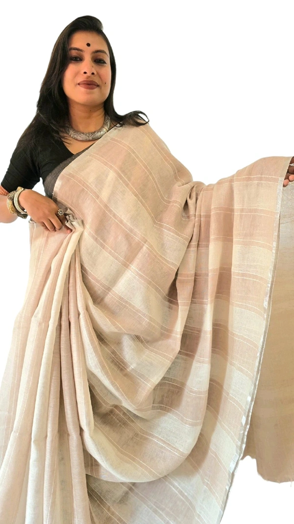 Elegant Beige Stripes Linen Saree - Perfect for Every Occasion
