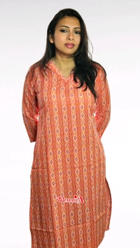 Crafted from premium-quality cotton, it offers unmatched breathability and softness, ensuring you stay comfortable all day long. The vibrant prints add a touch of charm, making it a versatile piece that easily transitions from daytime chic to evening elegance. This kurti is more than just a garment – it’s a statement of refined fashion.