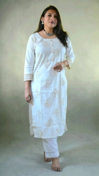 Adorned with exquisite embroidery all over, this versatile piece effortlessly combines tradition and modernity. Whether you're attending a meeting, catching up with friends, or enjoying a family gathering, this kurti promises a polished look that speaks volumes about your refined taste.
