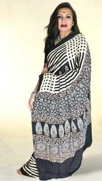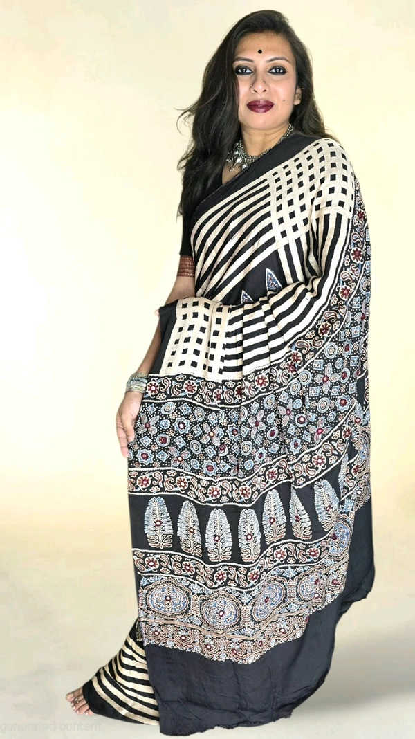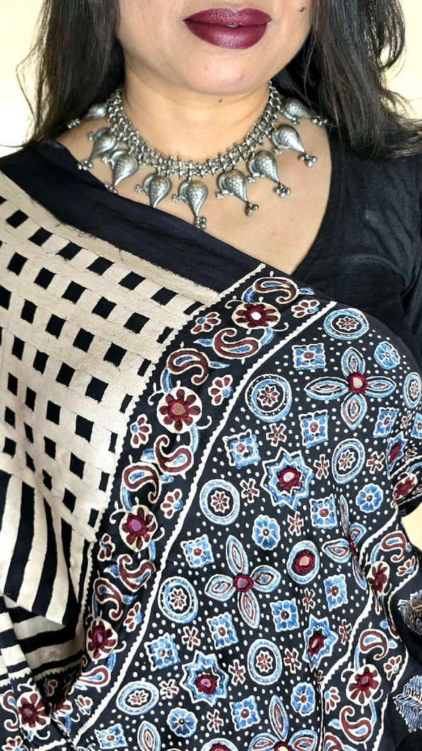 Mirror Ajrakh Modal Saree – A Stunning Blend of Tradition and Elegance