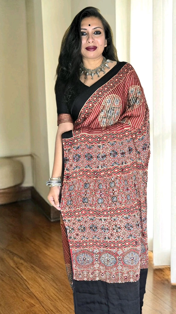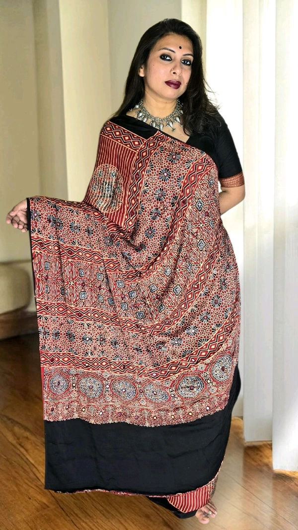 Mirror Ajrakh Modal Saree – A Stunning Blend of Tradition and Elegance