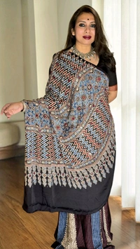 Embrace the timeless beauty of handcrafted artistry with the Mirror Ajrakh Modal Saree from Aparajita FashioNation. Designed for discerning buyers who appreciate tradition and craftsmanship, this saree is a masterpiece that combines impeccable detailing with premium fabric. Whether you're attending a festive celebration, wedding, or cultural event, this saree will ensure you stand out with grace and sophistication.