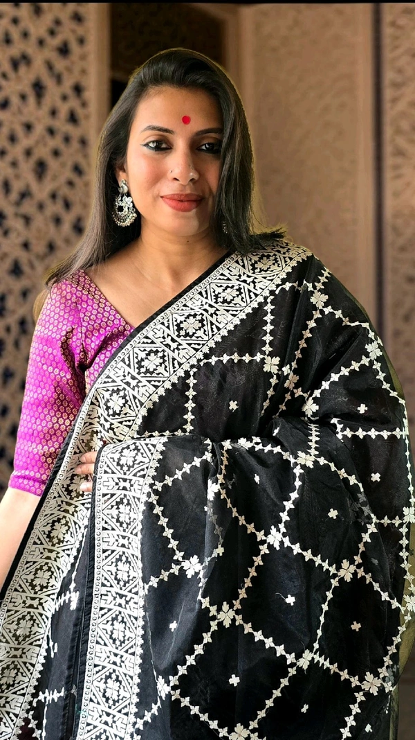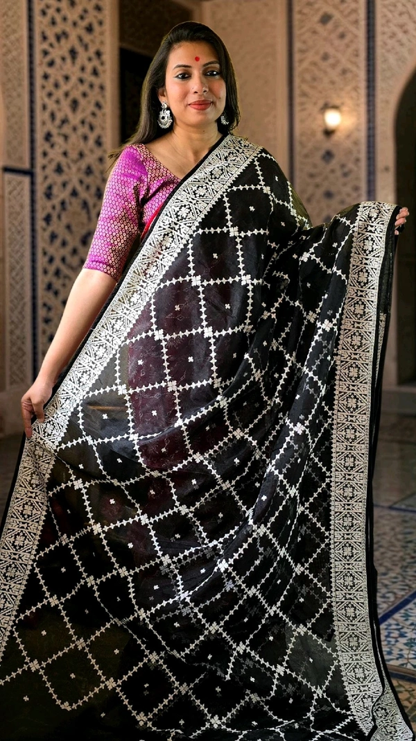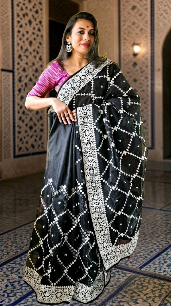 Crafted with premium-quality organza fabric, this saree effortlessly blends traditional charm with modern aesthetics. Whether it's a grand wedding, a festive gathering, or an evening soirée, this masterpiece ensures you stand out in style.