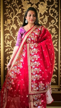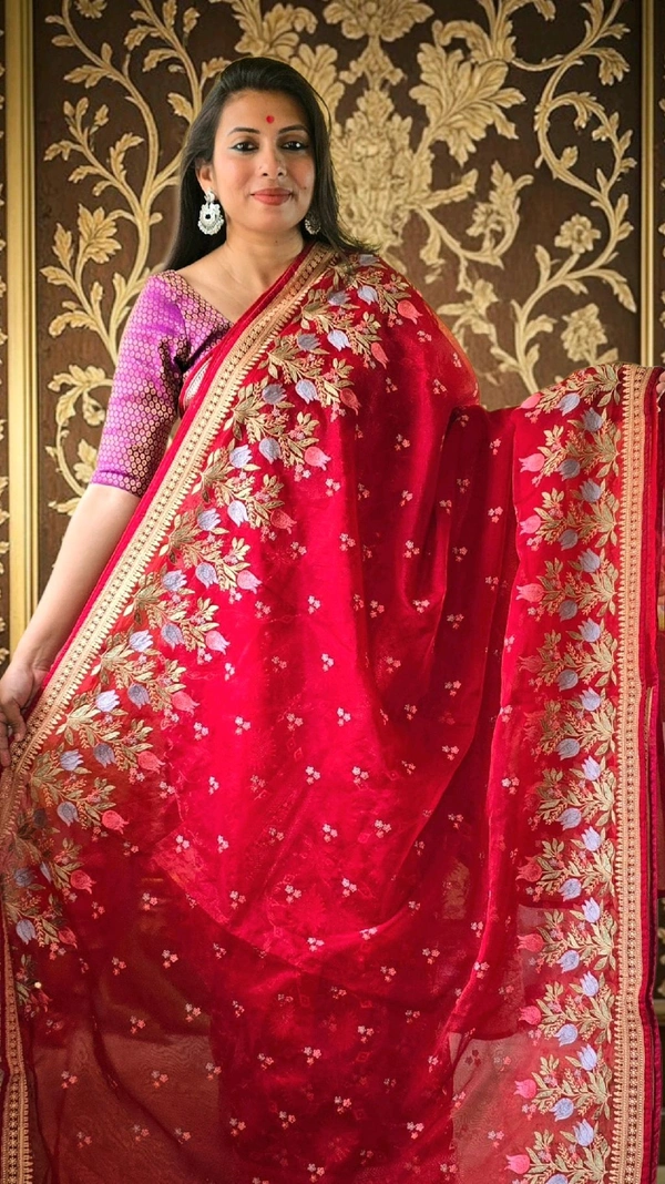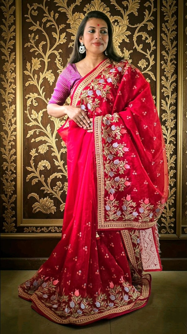 - Luxurious Organza Fabric: Crafted with premium organza, this saree offers a sheer, lightweight drape that feels as good as it looks.