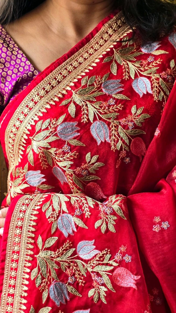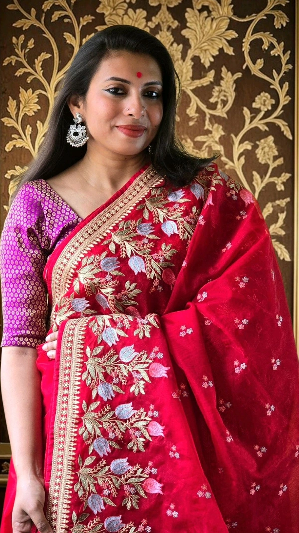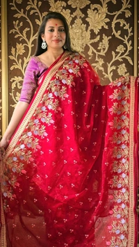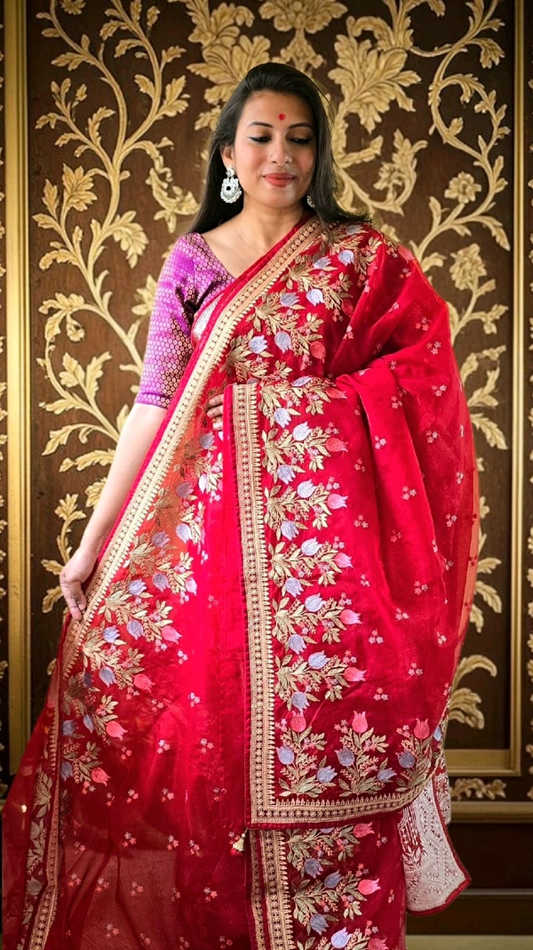 Don't miss the chance to own this stunning piece! Add the Organza Red Party Wear Saree to your wardrobe today and let your fashion speak volumes at your next event.