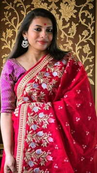 Step into the spotlight with the Organza Red Party Wear Saree, exclusively brought to you by Aparajita FashioNation. Designed for the modern woman who loves to blend tradition with contemporary elegance, this saree is a statement piece that exudes sophistication and charm. Whether you're attending a wedding, a festive celebration, or a glamorous evening event, this saree promises to make heads turn.