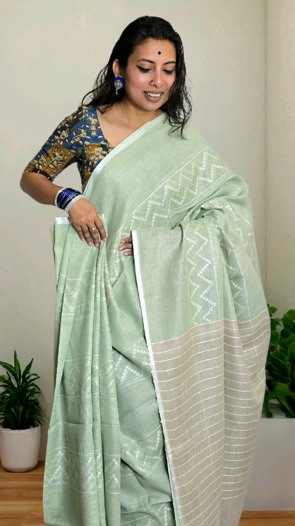 Crafted with care and attention to detail, the Pastel Linen Sarees from APARAJITA are a testament to understated elegance.