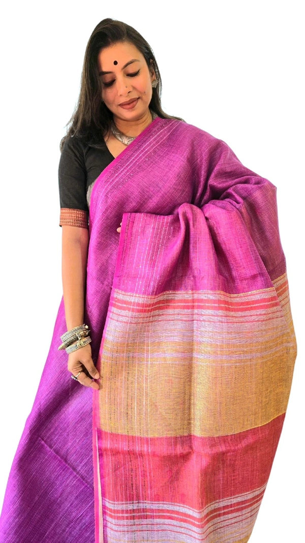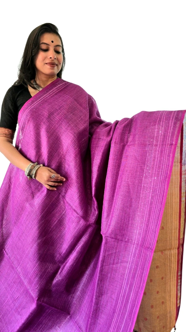 Don’t miss the opportunity to own a piece of elegance that stands out in every crowd. Whether you're looking to make heads turn or simply feel beautiful, the Pink Check Linen Sarees is your go-to attire.