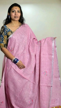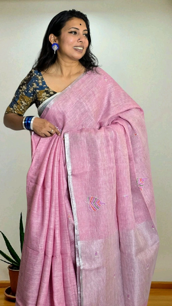Don't wait! Add the Pink Embroidery Linen Saree to your collection today and make every moment a fashionable one.